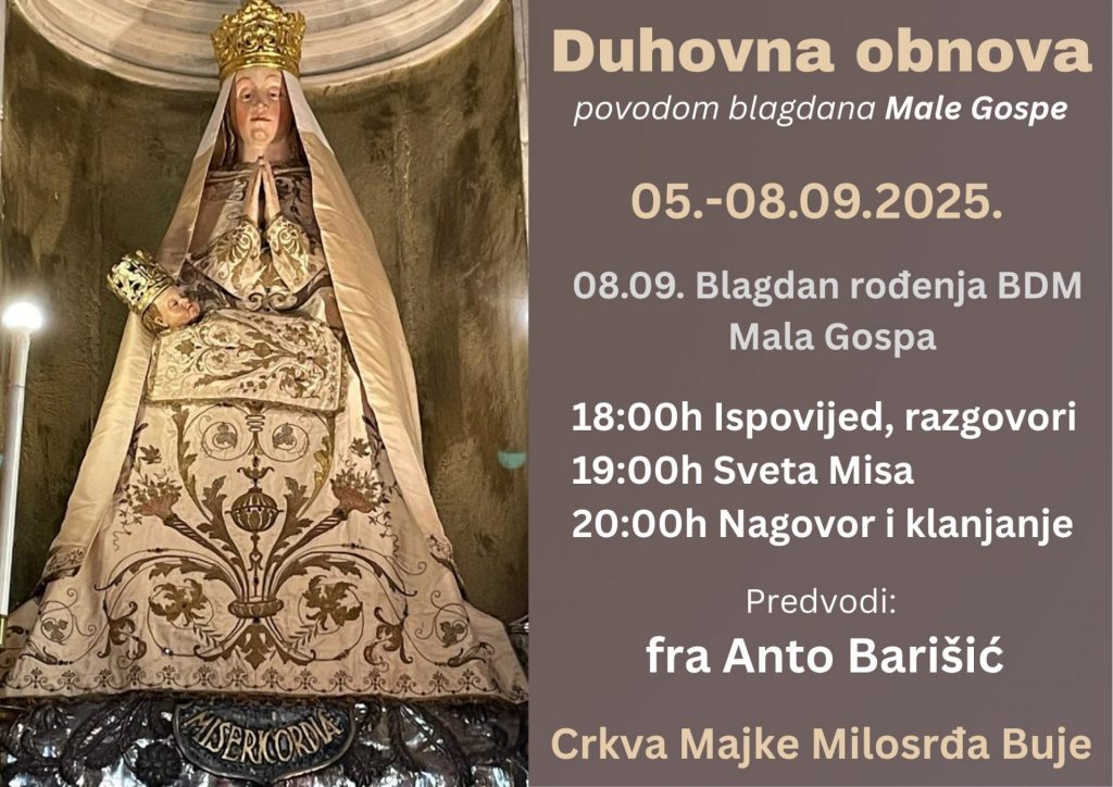 07.09. Glazbena grupa je animirala zadnji dan trodnevnice uoči blagdana Male Gospe u Bujama. Svetu Misu i klanjanje predvodio je fra Anto Barišić.