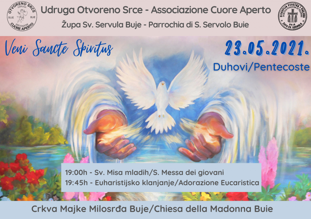 23.05.2021. Na blagdana Duhova – Pedesetnice, animirali smo u Bujama nedjeljnu sv. Misu mladih i euharistijsko klanjanje koje je predvodio don Marcin, župnik.